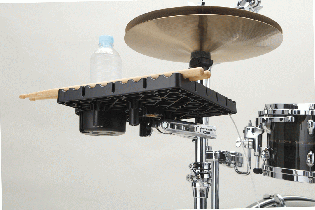 Designed to hold essential items for any performance, the TAT10 Accessory Tray includes a cup holder, unique edges specially shaped for drumsticks, and S-hooks to hang bags or other items. Covered in non-slip felt, the tray features 6 passthroughs for clean cable management. Additionally, the tray comes with 4 poles to attach to an MC61 clamp as well as 5/8” microphone threading on the underside for even greater set-up flexibility.