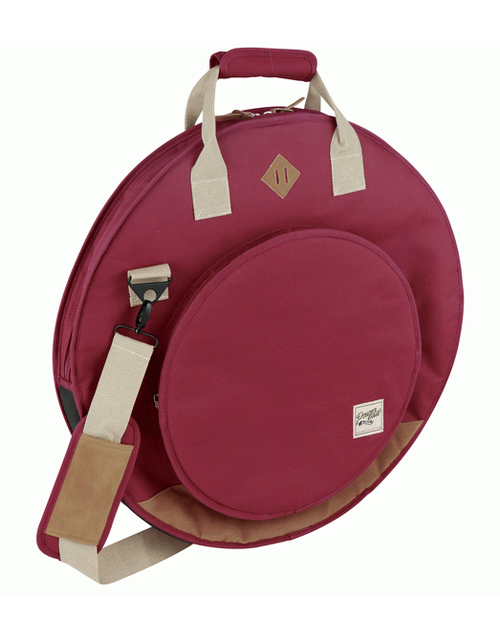 The Tama TCB22WR Powerpad Designer Cymbal Bag 22" Wine Red is designed to carry cymbals up to 22” in its main compartment, and hi-hat cymbals or effect cymbals up to 15” in its front side pocket. It also features a 20mm thick semi-hard cushion with a nylon surface for protection & durability, as well as a padded shoulder strap and handle for portability. An eye-catching wine red finish is accented with suede material. Designed using eye-catching design and color with 20mm thick semi-hard cushion, padded shoulder straps and handle. 22” compartment dividers (3 pcs) and 15” compartment dividers (3 pcs) included.
