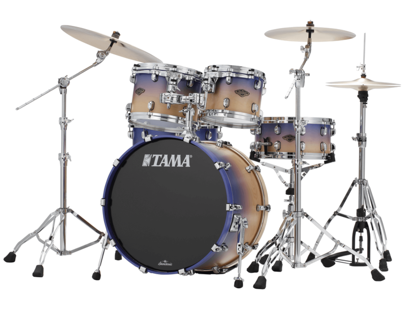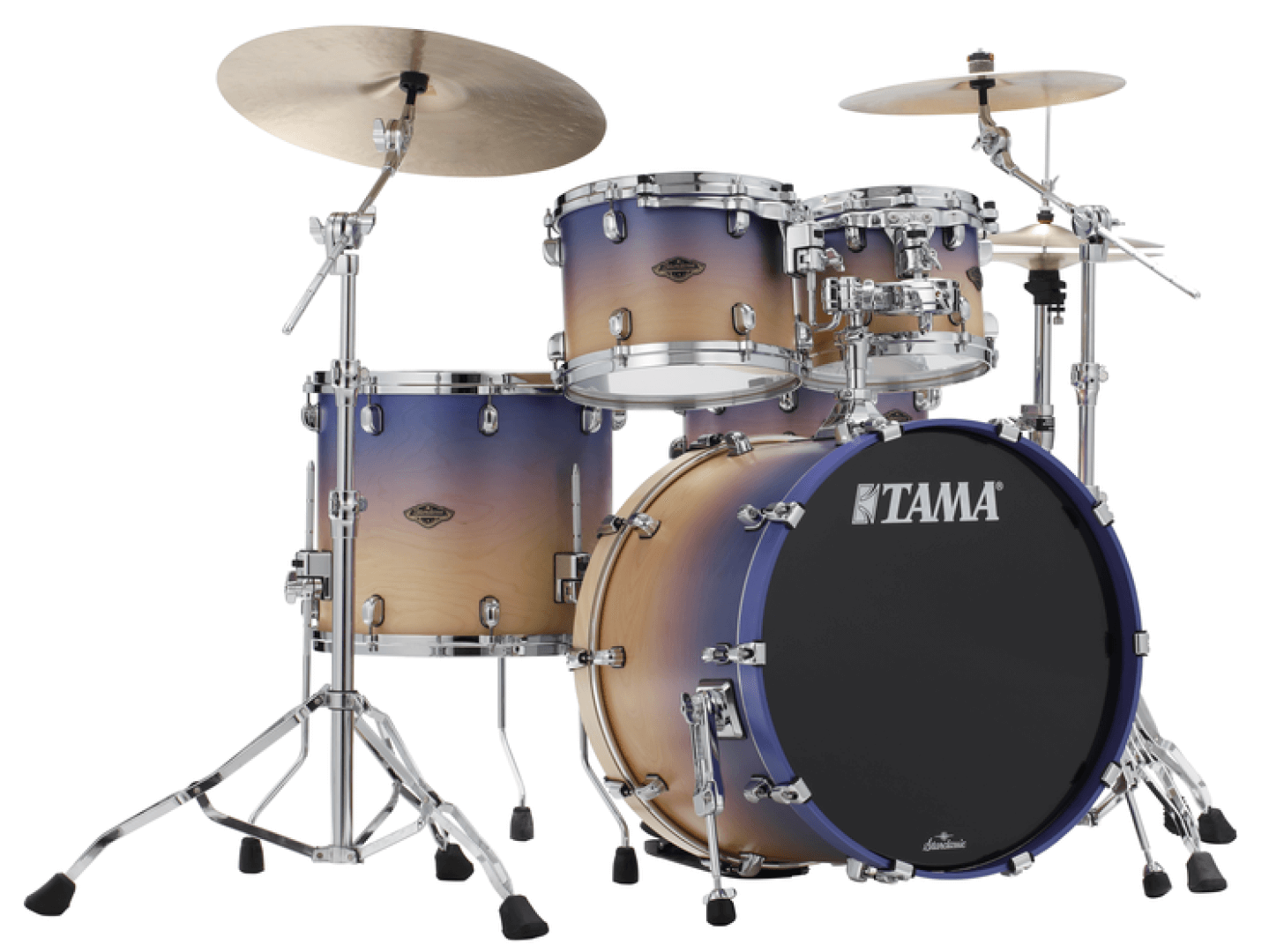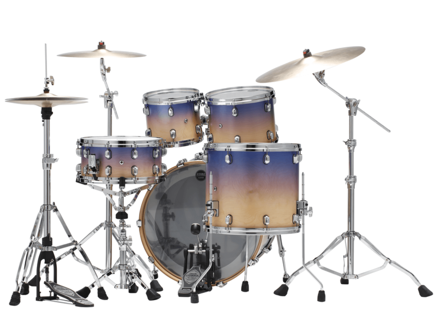 The Tama WBS42S SAF Starclassic Walnut/Birch 4-Piece Shell Pack Satin Purple Atmosphere Fade is part of the Starclassic Walnut/Birch Series. Exploring limitless possibilities, Tama's result in the wake of countless experimentation came in the form of the Hybrid Shell Walnut/Birch: combining the superior quality warmth and mid to low frequency tone of the increasingly popular and truly unique Walnut, with the well-defined and uncompromisingly solid attack of Birch. Whilst Tama successfully preserved their unique sonic trademarks, the characteristics of both Walnut and Birch blend to persuade a very focused sound that would define itself with great distinction within a musical ensemble; married with controlled sustain and clarity; all sealed with an undeniably palpable feeling of warmth and resonance when performed.