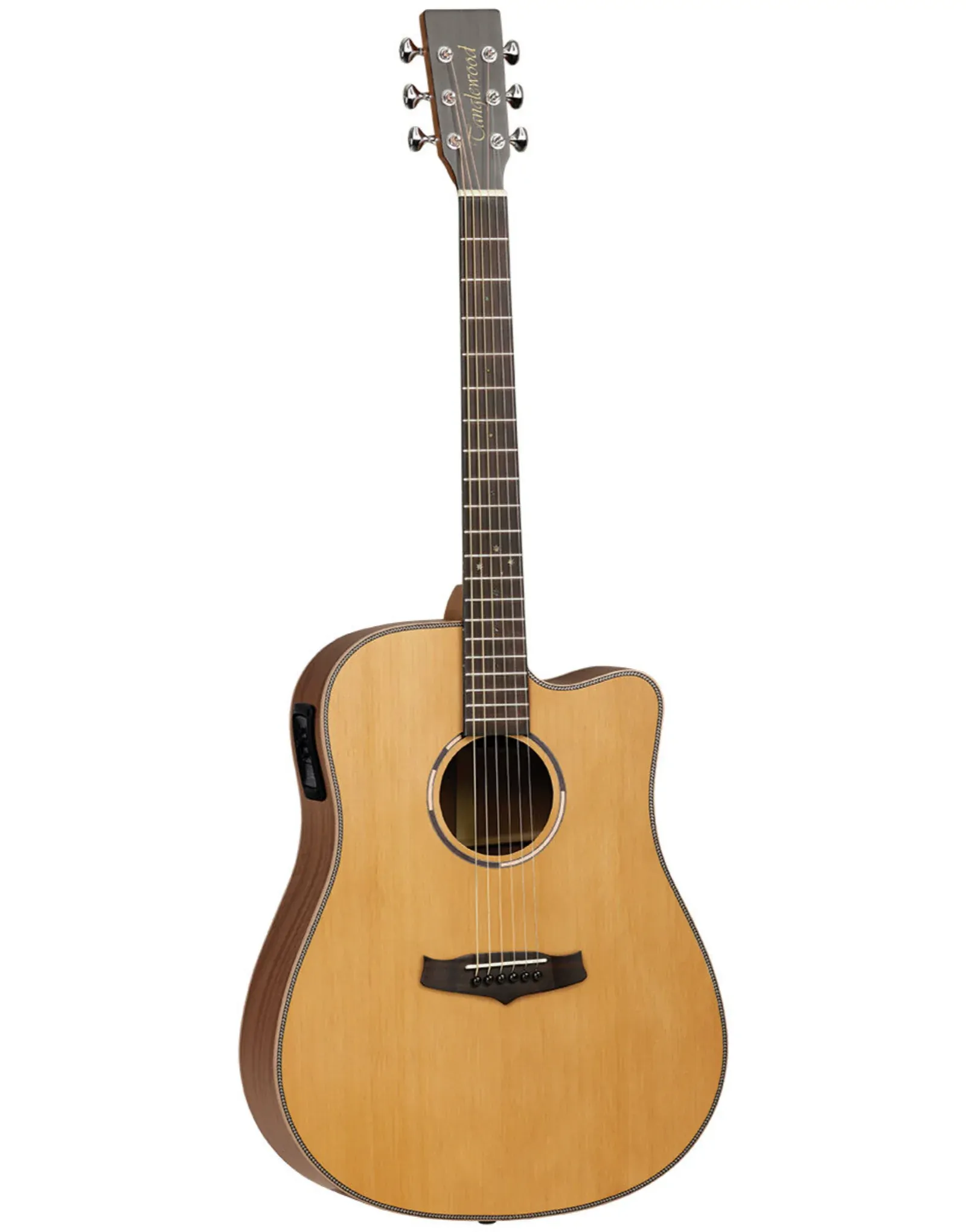 The Tanglewood T25-DCE is a limited edition 2025 reissue celebrating two decades of Tanglewood guitars in Australia. Featuring a dreadnought cutaway body, solid A grade cedar top, and mahogany back and sides, it delivers bold tone and warm projection. The East Indian rosewood fingerboard and bridge ensure smooth playability, while the herringbone and flame maple binding, abalone inlays, and Southern Cross motif elevate its visual appeal.