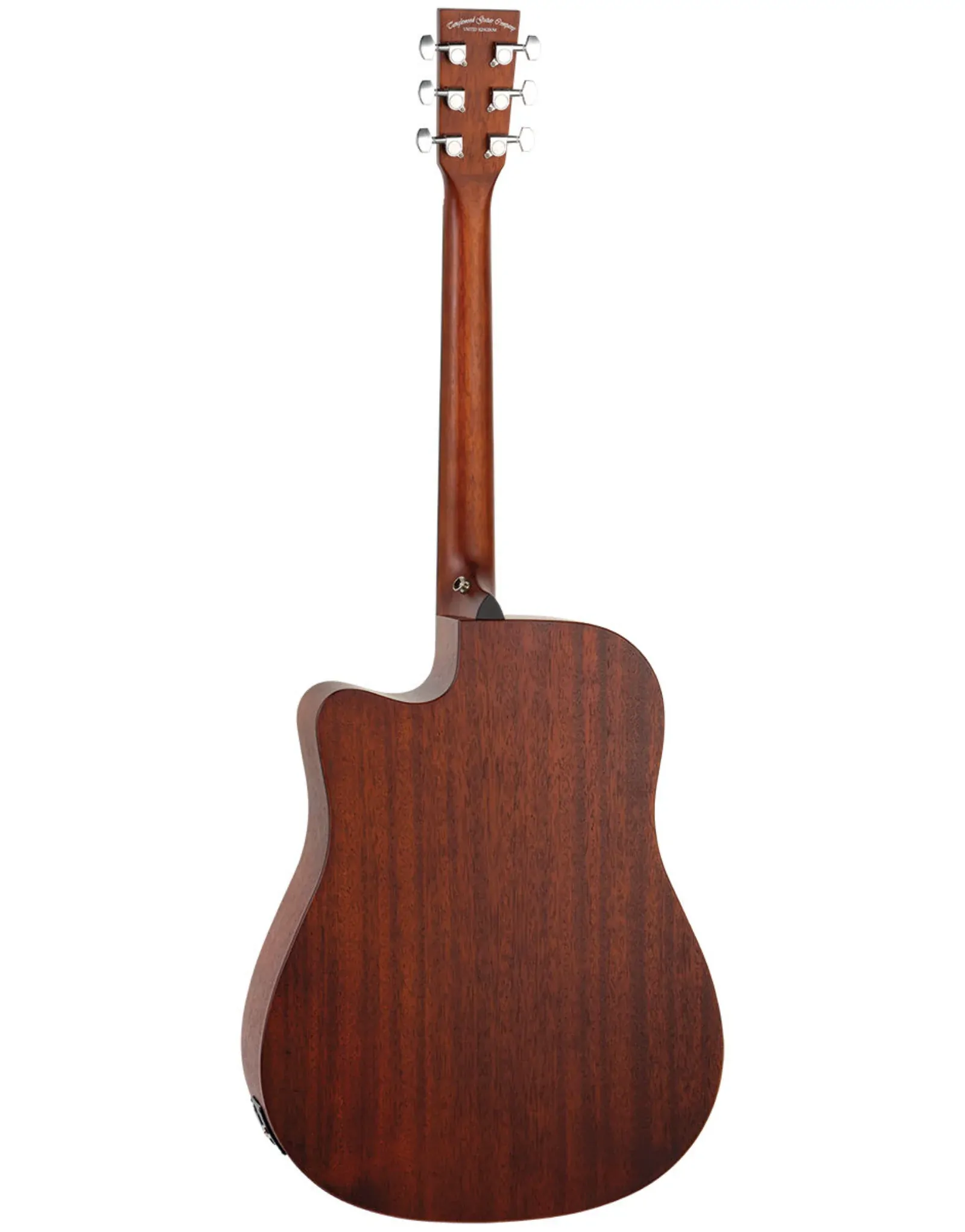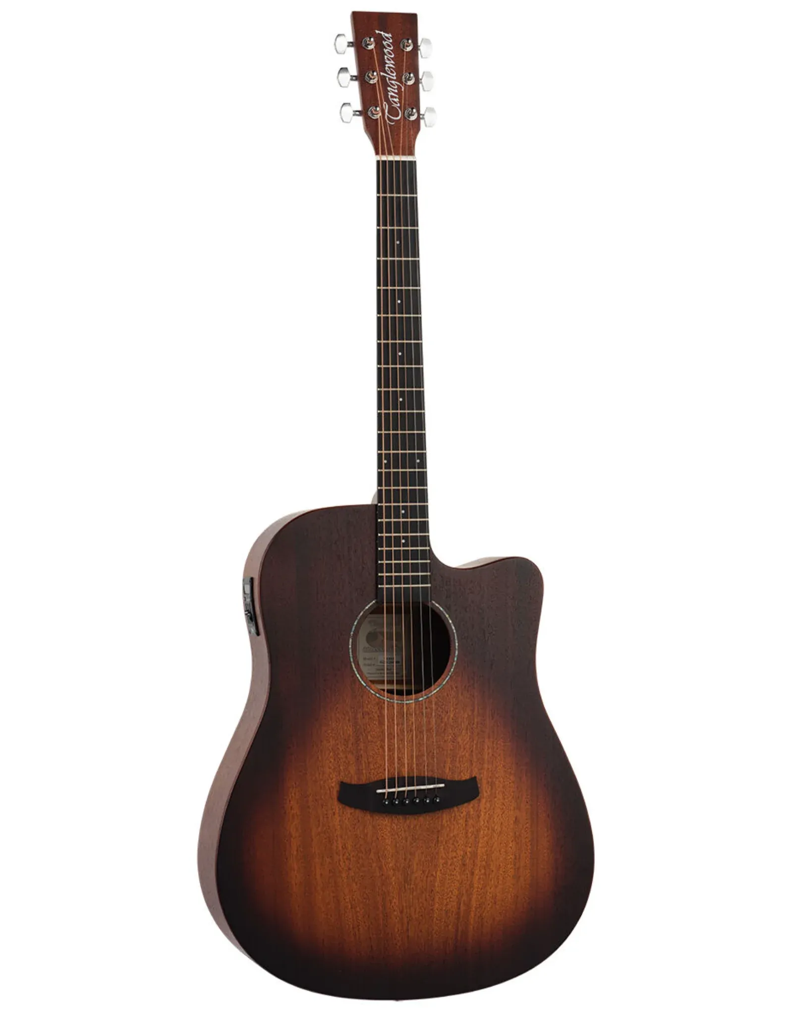 The Tanglewood TC5-CE Crossroads Dreadnought is a vintage-inspired acoustic-electric that blends classic aesthetics with modern performance. Crafted with a mahogany top, back, and sides, it delivers warm, resonant tones with excellent projection. The dreadnought cutaway design offers powerful low-end response while providing easy access to higher frets. Featuring a whiskey burst satin finish, this guitar has a timeless, worn-in look reminiscent of classic 1930s acoustics. Equipped with the Tanglewood TEQ-MX pickup system, it ensures clear and natural amplified tones for stage and studio use. The eboncore fingerboard provides a smooth playing experience, making it ideal for both strummers and fingerstyle players.