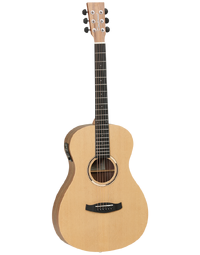 The range comes in dreadnought, folk, super folk and left hand models so you are sure to find the one to meet your needs! Our deluxe model features all ebony wood, super folk cutaway / electric, maple binding and a natural gloss finish.