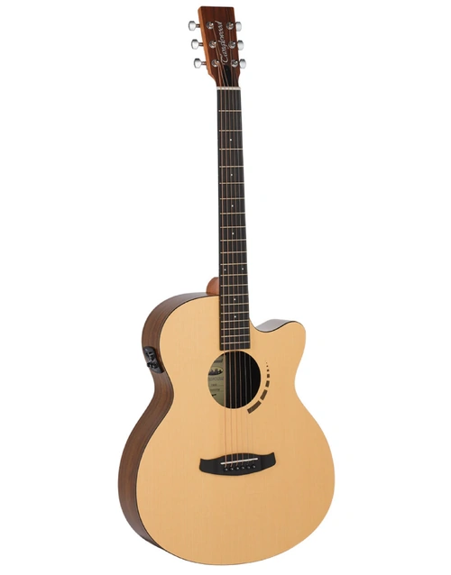 The Tanglewood TM4-CE Metropolitan SuperFolk is designed for players who want classic acoustic character with reliable modern construction. Its Super Folk cutaway body shape offers a comfortable feel while delivering clear projection, making it ideal for both fingerpicking and strumming. The HPL Spruce top provides bright articulation and balanced response, while the koa back and sides add warmth and midrange richness.