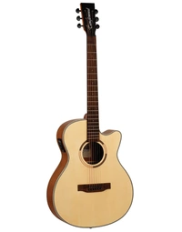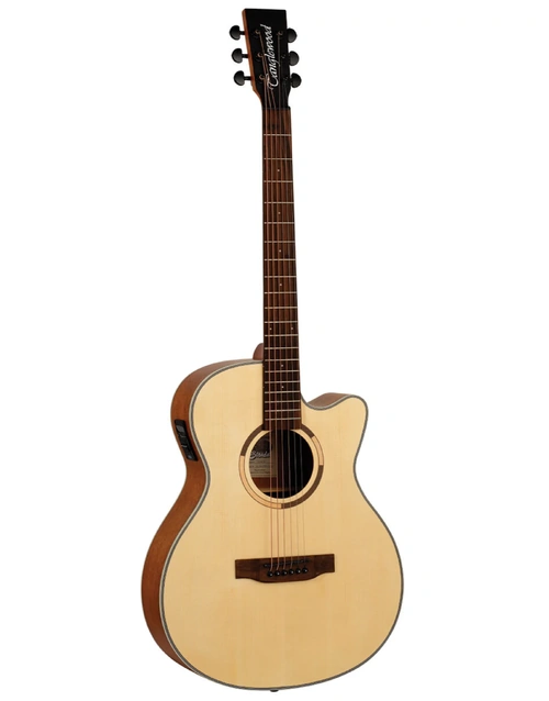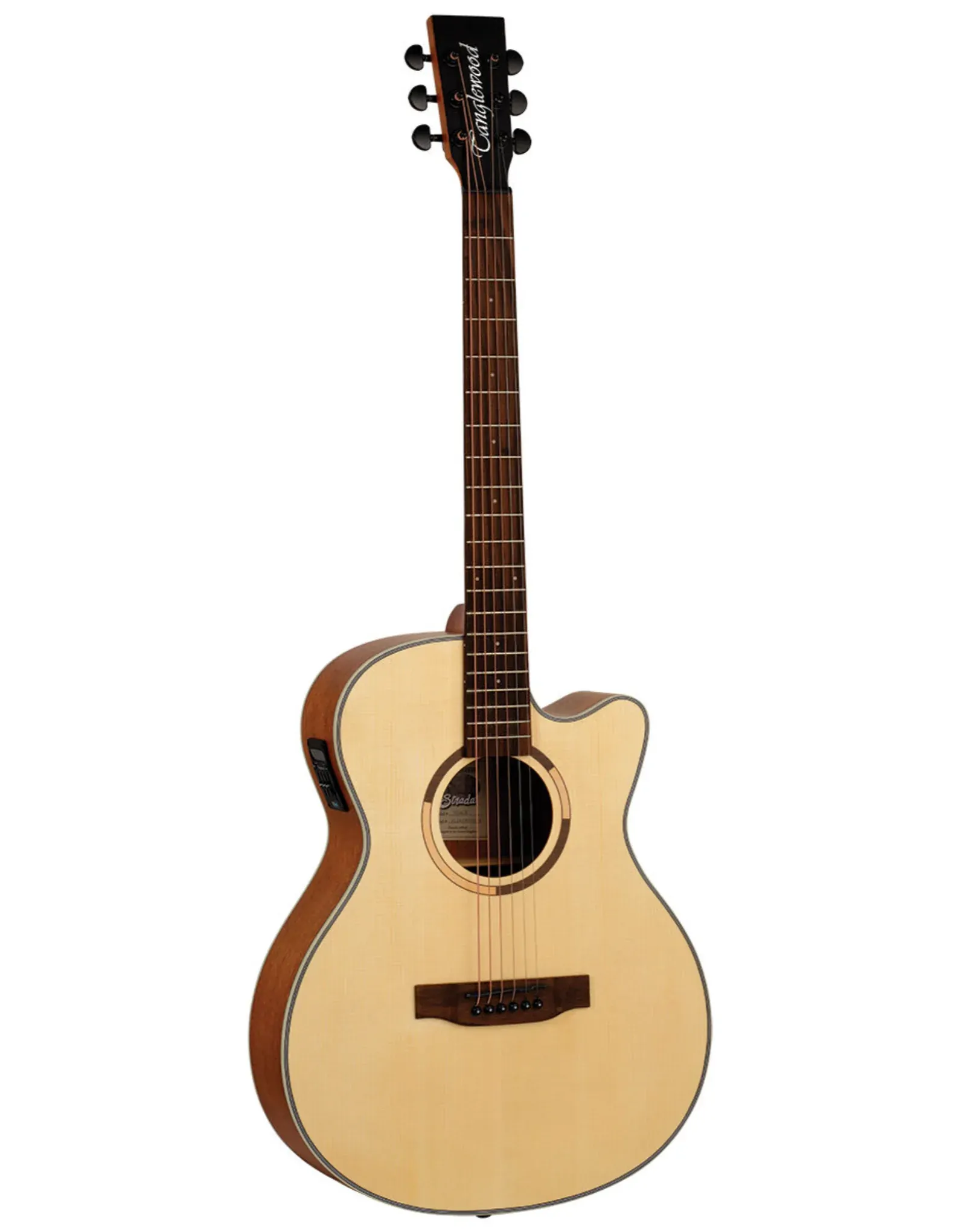 The Tanglewood TS4-CE Strada is a Super Folk acoustic-electric designed to make your first playing experience feel effortless and rewarding. Its spruce top delivers clear, vibrant tone, while mahogany back and sides add warmth and balance. The comfortable cutaway body allows easy upper fret access, and the Ebony Amara fingerboard ensures smooth, reliable playability. Finished in an open pore satin, it looks and feels natural, enhancing resonance. With built-in electronics, it’s stage-ready right out of the box.