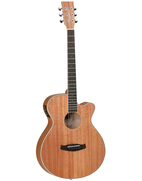 The Tanglewood Union series are outstanding value, featuring the kind of specifications not usually found in such an affordable series of guitars. This is especially evident in their use of Solid Mahogany tops, as well as maple binding. Thanks to their use of Eboncore fretboards, which is a simulated Ebony product, the Tanglewood Union series feature class-leading intonation and playability. The Tanglewood TWUSFCE Union Acoustic Guitar is a Super Folk size, perfect for musicians who prefer a smaller guitar.