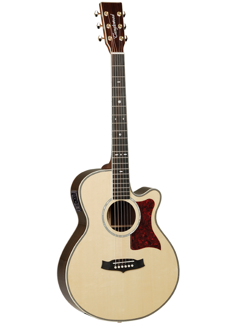 Tanglewood Heritage Series instruments are beautifully constructed with the most premium of source materials and the highest level of hand craftsmanship. Heritage Series models are very distinctive owing to their unique pro spacing nut width, ideally suited to the professional fingerstyle player. Tasteful decorative bindings in Walnut & Rosewood, genuine Piano Black Ebony fingerboards, and AAA Grade Engelmann Spruce tops are used exclusively on these instruments. Premium features also include Grover machine heads and Fishman Presys Plus pickup installed.
