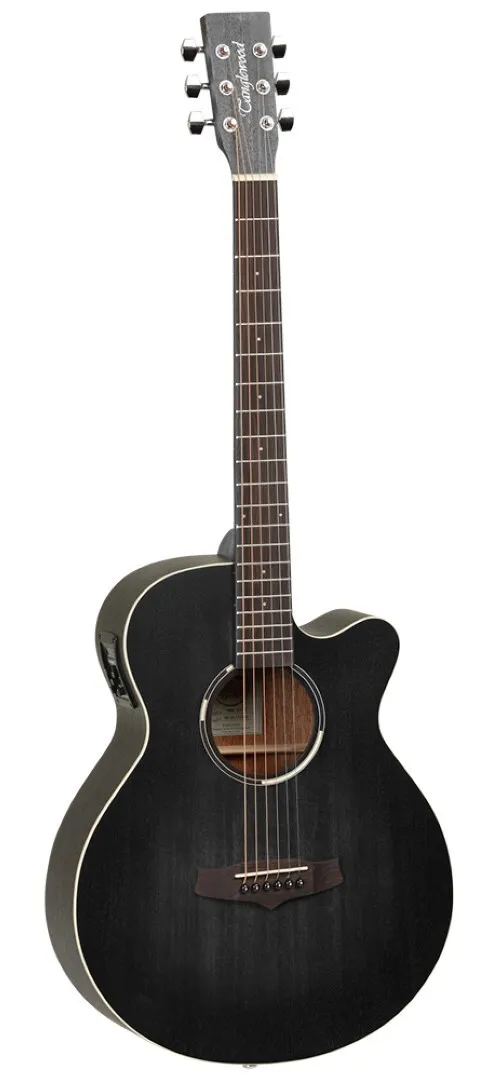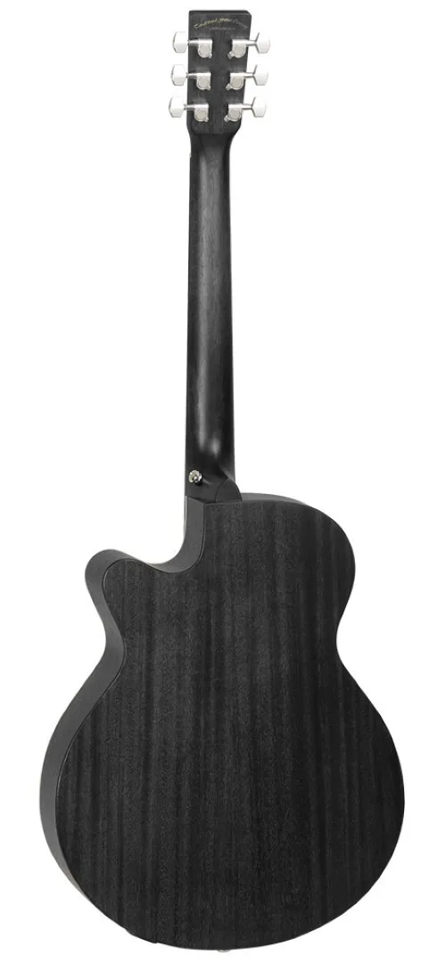 The Tanglewood TWBBSFCE Blackbird Superfolk Acoustic w/ Pickup, finished in Smokestack Black, features a hand selected Mahogany top, Mahogany back and sides, a Techwood fingerboard and bridge, and the Tanglewood Premium Plus EQ system.