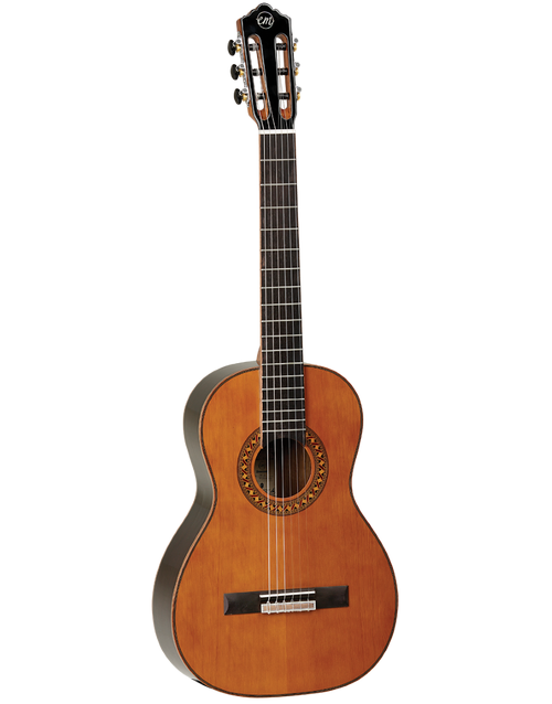 The Tanglewood TWEMD4 Enredo Madera Dominar Solid Top Parlour Classical Guitar is a testament to the artistry of Spanish classical guitar craftsmanship. With centuries-old secrets passed down through generations of luthiers, this instrument embodies the rich tradition of handcrafted excellence. Unlike steel-string guitars, nylon-string guitars require a different approach and expertise, which Tanglewood's skilled team of luthiers masterfully apply. Inspired by Flamenco and Mariachi styles, this classical guitar range offers a solid Cedar top paired with matching Walnut back and sides. Whether you're a seasoned classical guitarist or exploring the genre for the first time, the TWEMD4 promises exceptional quality and timeless beauty.
