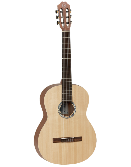 Immerse yourself in the enchanting world of Spanish classical guitar with the Tanglewood TWEME2 Enredo Madera Elegante. Handcrafted with meticulous attention to detail by Tanglewood's team of skilled luthiers, this guitar embodies centuries of Spanish guitar-making tradition. Drawing inspiration from the captivating styles of Flamenco and Mariachi, the Enredo Madera Classical series offers a choice of Spruce or Cedar tops, complemented by exquisite Mahogany or Walnut backs. With its Spruce top, Mahogany back & sides, Tech Wood fingerboard and bridge, natural satin finish, and included gig bag, this guitar delivers both exceptional playability and timeless elegance at an affordable price.
