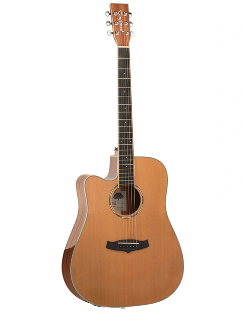 The Tanglewood TWPRO5-CE-NA-LH Winterleaf Pro is a left-handed dreadnought acoustic-electric guitar designed for rich, resonant tone and comfortable playability. Its solid cedar top delivers a warm, expressive sound with excellent dynamic response, making it ideal for both strumming and fingerpicking. The mahogany back and sides add depth and warmth, enhancing the guitar’s natural resonance. A cutaway design allows easy access to higher frets, making it perfect for versatile playing styles. Equipped with the Tanglewood Premium Plus EQ system, this guitar provides precise control over your amplified sound, whether on stage or in the studio. Finished in a natural gloss for a refined aesthetic, it’s built to impress both visually and sonically.