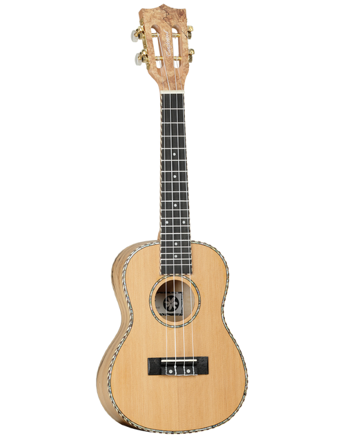 Our biggest design feature is the Tiare arched backs, for a truely authentic ukulele. The range covers a multitude of deluxe timbers including Flame Mahogany, Black Walnut, Spruce, Koa, Spalt Maple, Cedar, Figured Ovangkol & Figured Pacific Walnut, to name a few. Other features include Supernylgut Aquila strings, laser etched & abalone rosettes and premium gloss & satin finishes.