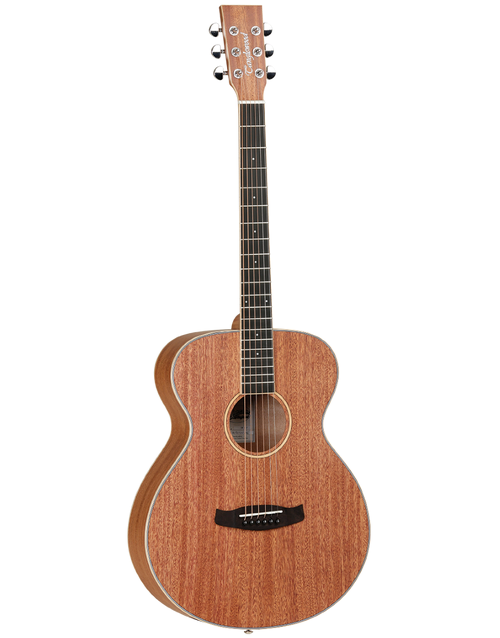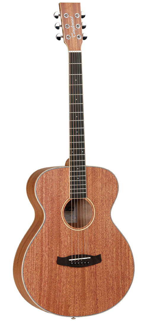 Offering outstanding value for money, Tanglewood's Union series acoustic guitars feature solid mahogany tops, and mahogany back and sides. Mahogany offers a warm, balanced tone, and looks great contrasted against a maple rosette and binding. Playability is equally impressive: an Eboncore (simulated Ebony) fretboard gives you great intonation, action, and neck stability.
