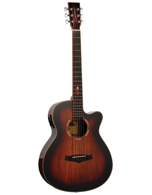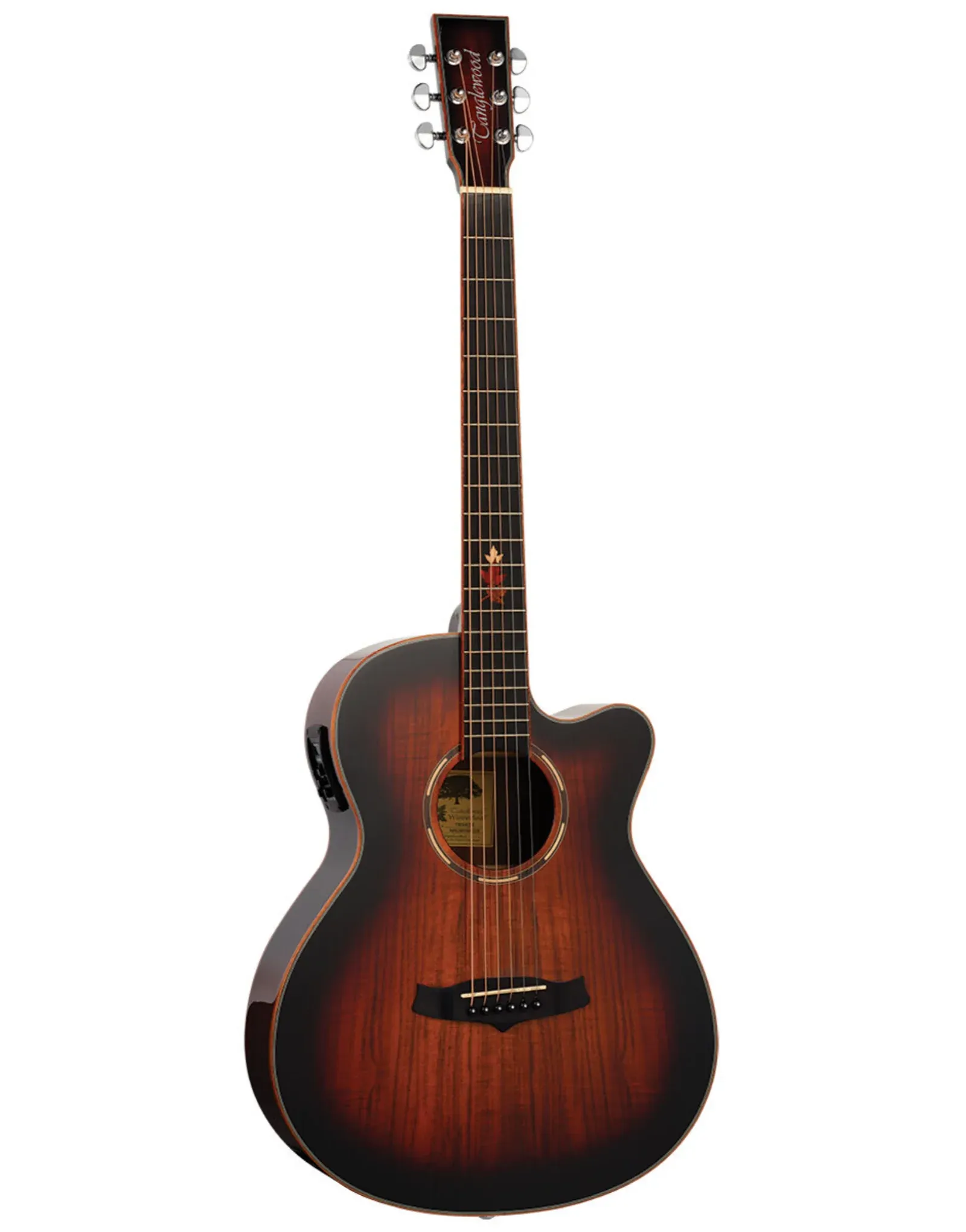 The Tanglewood TWX4-CE-K Winterleaf Exotic combines beautiful tonewoods with modern design for an exceptional acoustic-electric experience. A solid spruce top with koa veneer delivers rich resonance and clarity, while koa back and sides enhance visual appeal and add a touch of warmth to the tone. The SuperFolk cutaway body shape provides a comfortable playing feel and strong projection, suited to a wide range of styles. Featuring an Eboncore fingerboard with Autumn Leaf inlays and hemispherical fret ends, playability is effortless. The TW Premium Plus EQ system gives you stage-ready tone with built-in tuning and tone shaping controls.