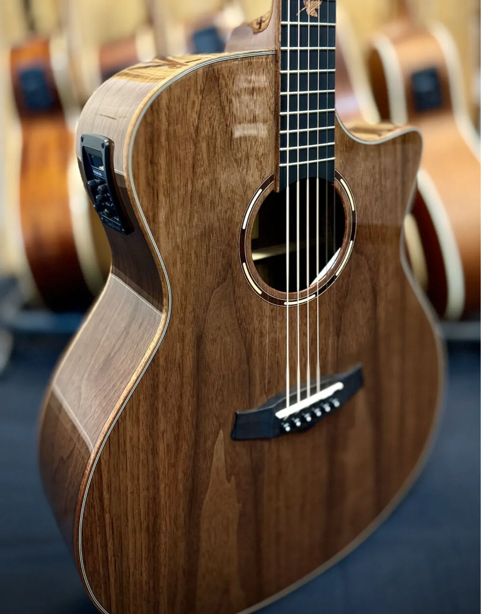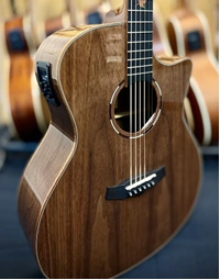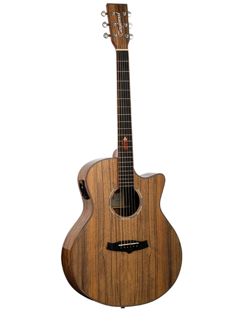 The Tanglewood TWX6-CE-BW Winterleaf Exotic offers premium tonewoods, quality hardware, and stage-ready electronics in a sleek and modern design. Featuring a solid black walnut top with matching back and sides, it delivers warm, articulate tone with plenty of character. The SuperFolk body shape with Venetian cutaway ensures comfortable playability and easy access to upper frets. A Natural Gloss finish showcases the wood grain beautifully, while Eboncore fingerboard with Autumn Leaf inlays and hemispherical fret ends provide smooth, effortless fretting. Onboard TW Premium Plus EQ and Elixir strings make it gig-ready straight out of the case.