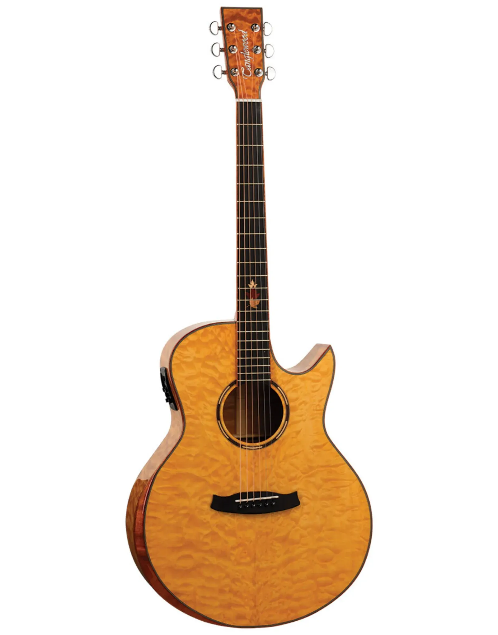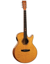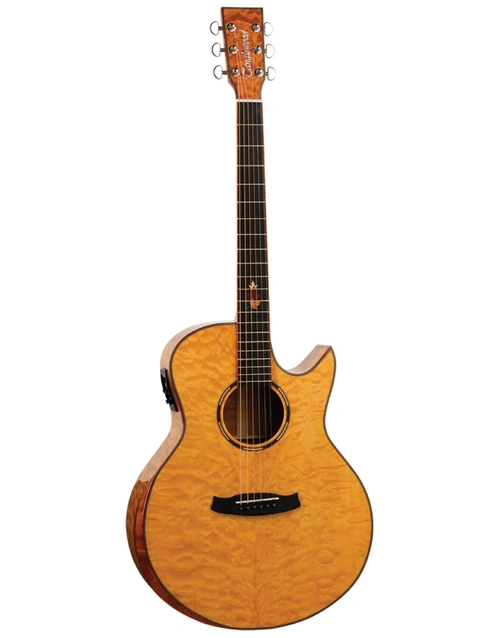 The Tanglewood TWX6-CE-SMF Winterleaf Exotic pairs premium tonewoods with a performance-ready design. With a solid quilt maple top and quilt maple back and sides, it delivers a bright, balanced tone with clarity across the frequency range. The Grand Auditorium body shape with Florentine cutaway offers great versatility and upper fret access, while the Eboncore fingerboard features eye-catching Autumn Leaf inlays. Finished in high-gloss Honey Burst, it’s a true visual standout. Equipped with a Tanglewood Premium Plus EQ system and onboard tuner, this guitar is stage- and studio-ready straight out of the box.