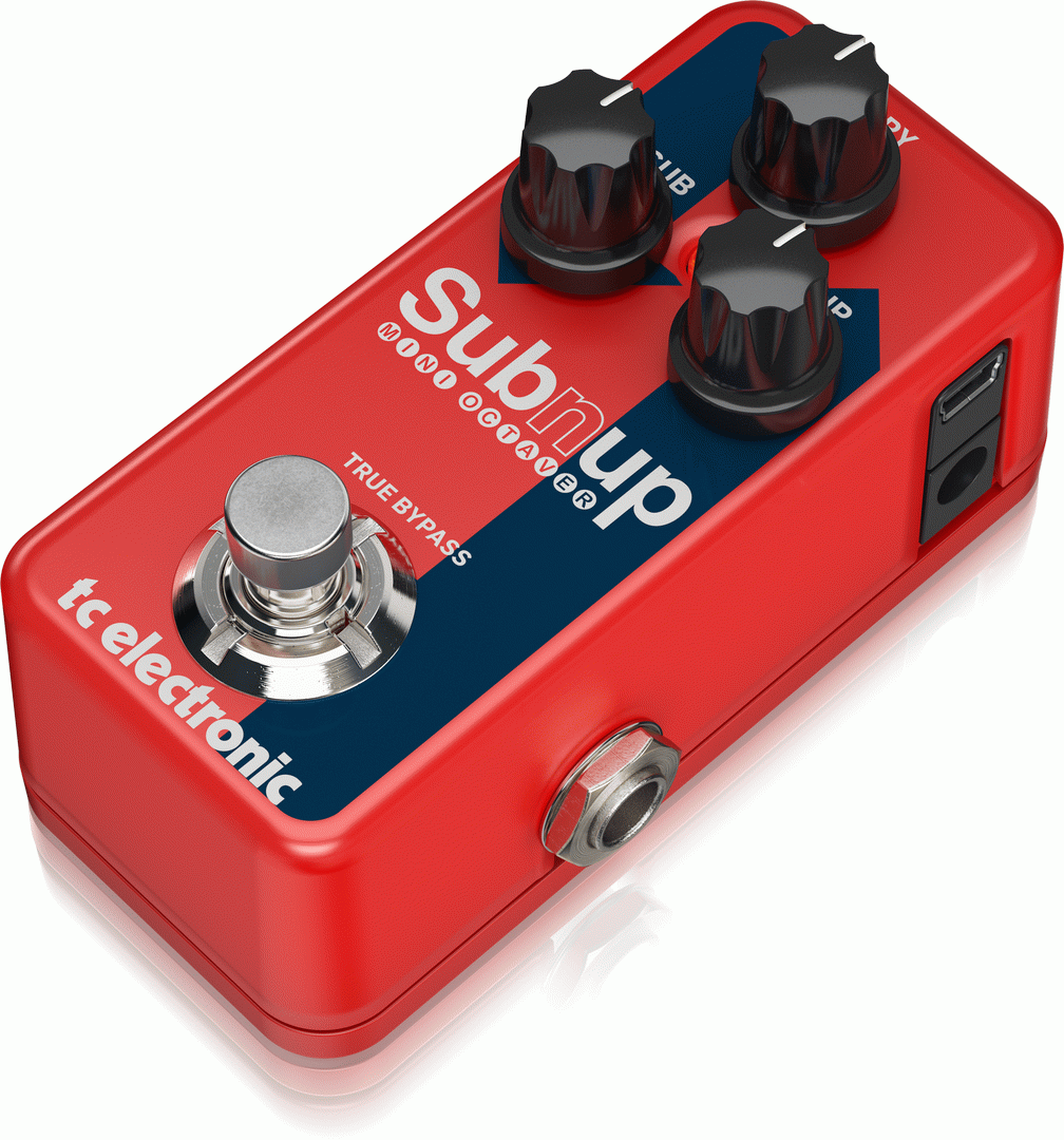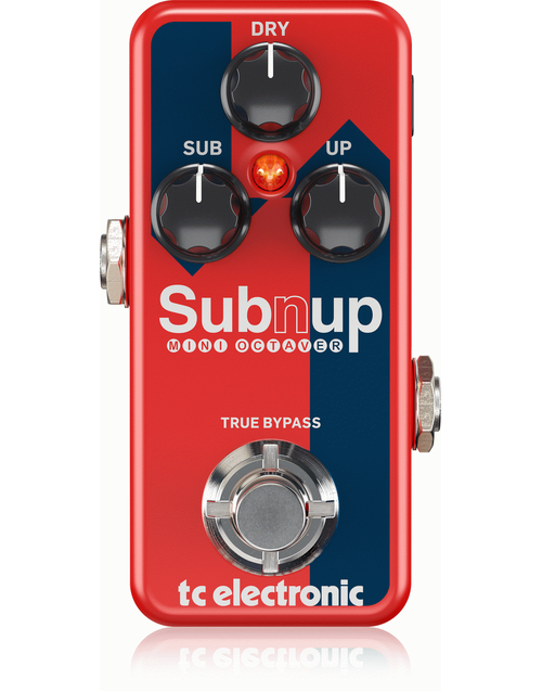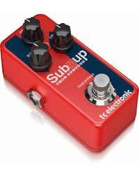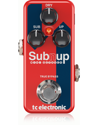 Delivering all of the polyphonic octave pleasantries that you know from its bigger brother, the Sub 'N' Up Mini sounds huge but looks tiny. Focusing on simplicity and ease of use, TC Electronic did away with the mini toggle switch and the two octaves down knob. Naturally, you can still turn Sub 'N' Up Mini into an old school monophonic octaver for that crackling pitch glitch of the olden days. If you're into a more modern sound and feel, the polyphonic octave algorithm keeps all your notes tracking true even when playing chords and harmonies or laying down the bottom pitch. Or, tap into the inspiring tones of our TonePrint family of artists. Just use the free TonePrint app to beam in your tone of choice and strap in for something really pitchin'!