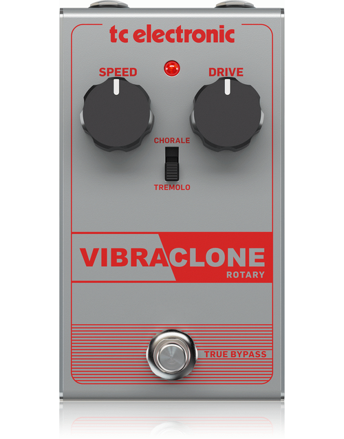 Every guitar player recognizes the thick, syrupy tones of their favorite ‘60s guitar heroes blasting their signature licks through a rotating speaker cone. Hendrix, Harrison, Trower, Gilmour, and too many others to list here – they all mastered the unique tone of the original rotating speaker. Now VIBRACLONE ROTARY brings that same lush, whirling effect to your pedal board, allowing you to explore everything from earthy and swampy to ethereal and spacy ambient sounds – all the way up to kaleidoscopic psychedelia!