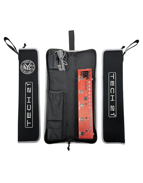 The TECH 21 GBFLY Fly Rig Gig Bag is a padded nylon gig bag to suit TECH 21 Fly Rigs, as well as power supply and accessories. There are three gusseted pockets with elastic trim: one for a fly rig, one for a power supply, and one spare for anything else you need to carry. There are also two accessory pockets: one with mesh, and one with a flap and Velcro closure. Silver embroidered TECH 21 logos on the front and back means your drummer wont mix it up with their stick bag!