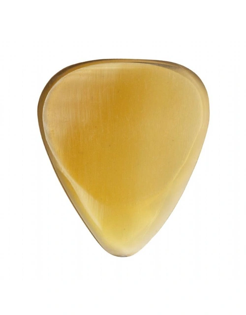Buffalo Horn has the closest tone to the fabled Tortoise shell picks as it is made from the same material, Keratin. Although softer than Bone it is still very hard wearing and has a more rounded mellow tone.