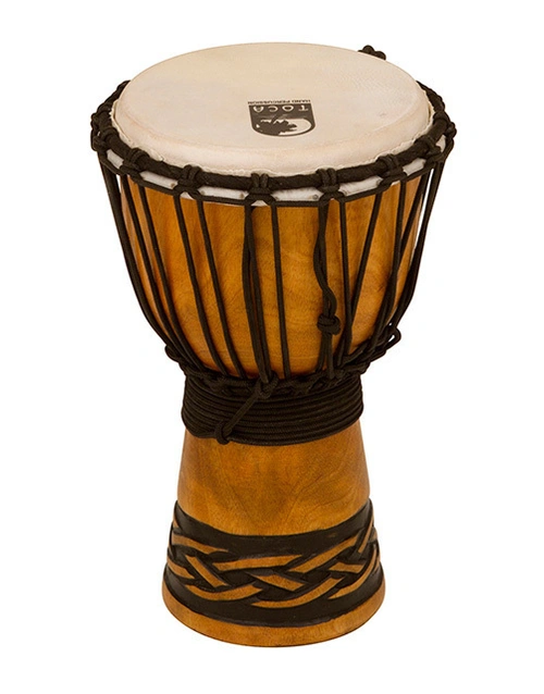 Toca's Origins Series Wood Djembes are as traditional as a djembe can get. Beautifully hand carved from a single piece of plantation grown mahogany, they are drums to be cherished and enjoyed for years. The shell's interior is grooved to eliminate unwanted overtones, so the drum produces classic high pitch slaps, robust midtones and rich deep bass tones. Origins Series Djembes have rope tuned all-weather, synthetic head which eliminates stretching, drying and losing pitch. They also come in different sizes to satisfy any player in search of a keepsake djembe.