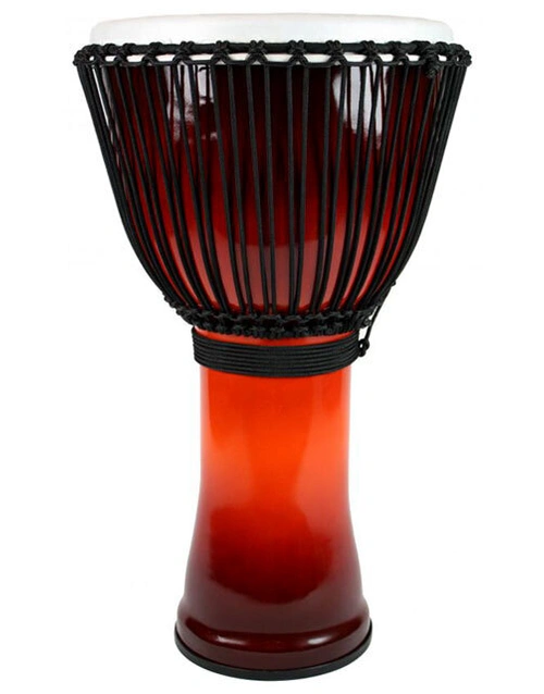 Freestyle II Rope Djembes now take the next step in performance with the installation of all-weather synthetic heads. The new heads eliminate the stretching, drying, and loss of pitch that can occur with natural skin heads due to changes in weather conditions. Thus they offer greater consistency in sound. Synthetic heads can also be tensioned over a wider range, making them able to produce higher, crisper slaps and deeper bass tones. Freestyle II Rope Djembes have also been improved with an increased number of rope runners that allow for improved tuning.