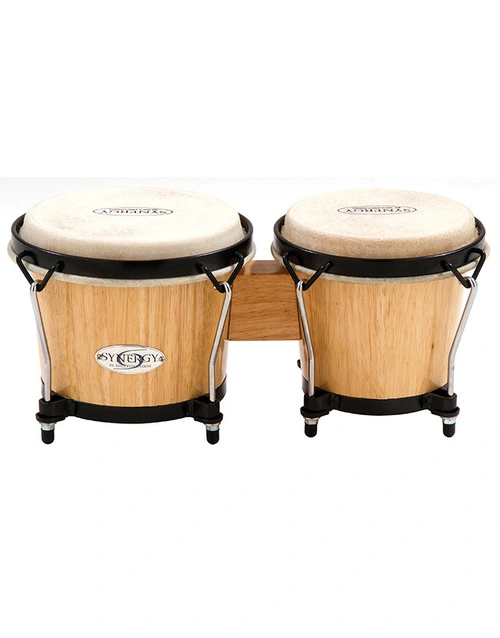 Natural Gloss Finish, 6" & 6-¾" heads, Natural rawhide heads, 28" two ply wood shell construction, Black Powder coated hardware.
