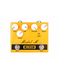 Big brother to the Tone City Audio Golden Plexi pedal, and similarly Marshall-inspired, the Tone City Audio Deluxary Series Model M Distortion Pedal features simple controls, plenty of headroom, two distortion modes, and a volume boost function. This true bypass pedal delivers two Marshall-style distortions via its High-Gain and Crunch modes. Switch to Crunch for that classic British crunchy blues/classic rock tone. Switch to Hi-Gain for a modern JCM-esque tone with strong mids and much more distortion than the Crunch mode, perfect for everything from rock to heavy metal. Then punch it into overdrive with the Boost switch, which works equally well on clean and driven settings.