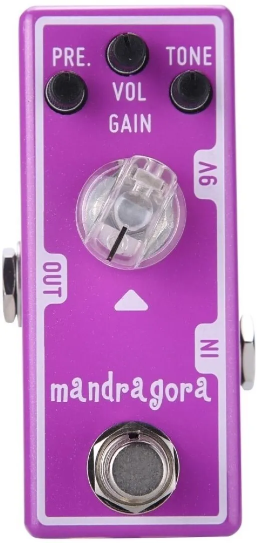 The Tone City Audio Mini Series Mandragora Overdrive Pedal delivers versatile and responsive overdrive tones in a pedalboard-friendly package. This true bypass pedal features simple controls that make it incredibly easy to achieve a huge range of low- to moderate-gain overdrive tones, perfect for everything from rock riffs to blues licks. Volume and Gain controls are an obvious must, with the Tone control covering an extensive frequency range, allowing you to dial in plenty of presence, no matter the voice of you amp. The Pre knob dials in rich harmonics, perfect for when your solos need a little more vibrancy.