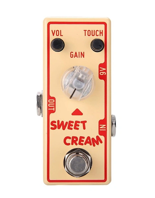 Just like its name suggests, the Tone City Audio Mini Series Sweet Cream Overdrive Pedal is a sweet and creamy OD with amp-like responsiveness. This true bypass analogue pedal features simple controls that make it incredibly easy to apply over a clean signal for a little bit of low-gain grit, or over an already-dirty signal for bigger, richer and smoother distortion. Instead of a tone knob, you'll find a touch knob, which completely changes the Sweet Cream's EQ and compression, instead of simply increasing/decreasing the high-end like a standard tone knob. This makes the Sweet Cream much more versatile than its size and control layout might suggest.