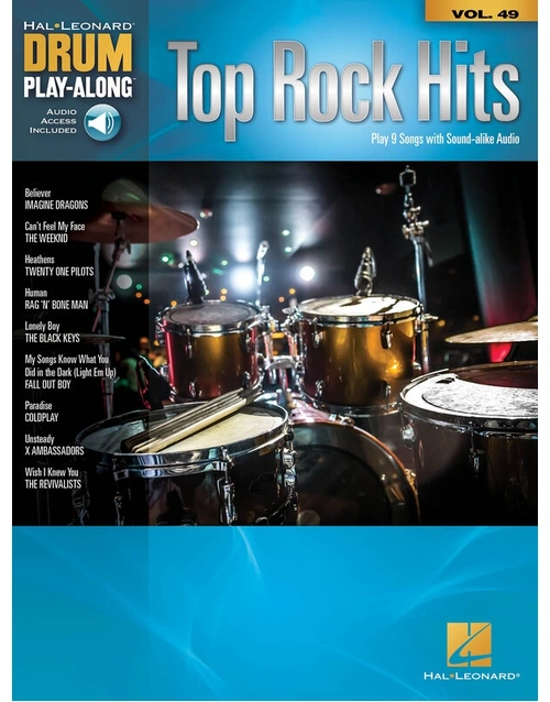 Just follow the drum notation, listen to the audio to hear how the drums should sound, then play along using the separate backing tracks. The lyrics are also included for quick reference. The audio files are accessed online for download or streaming and include PLAYBACK+ features that allow you to adjust the recording to any tempo without changing the pitch! Includes: Believer (Imagine Dragons) • Can't Feel My Face (The Weeknd) • Heathens (Twenty One Pilots) • Human (Rag 'N' Bone Man) • Lonely Boy (The Black Keys) • My Songs Know What You Did in the Dark (Light Em Up) (Fall Out Boy) • Paradise (Coldplay) • Unsteady (X Ambassadors) • Wish I Knew You (The Revivalists).