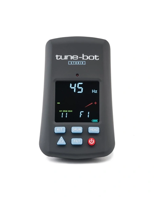 With all the ground-breaking features of the original Tune-Bot, the Tune-Bot Studio offers more reliable readings with a higher frequency range, a four-color display, streamlined keypad, and improved kit-saving options—all in a performance package that’s easier to operate.  Discover how awesome your drums can sound after drum tuning with tune-bot Studio. Find your ultimate drum tunings, save them and re-tune in a flash with Tune-Bot's flagship drum tuner.