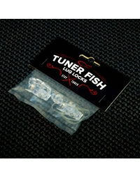Tuner Fish Lug Locks are small fish-shaped locks, with a star-shaped cavity that grips your drum's tuning rod. The 'tail' of the fish then rests on your hoop, locking the lug lock into place. If you want to use the Tuner Fish Lug Locks on the resonant, rather than the batter head, you can use the included secure bands. Lug Locks are a great way to keep your drums in tune.