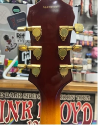 This Used Epiphone Joe Pass Emperor II Pro in the classic Vintage Sunburst finish is a beautifully crafted hollowbody that delivers the smooth, warm tones Joe Pass was famous for. This pre-owned model is in very good condition, with light cosmetic signs of use (please see photos), but nothing that affects playability. Featuring a laminated maple single-cutaway body, maple neck with slim taper profile, and rosewood fingerboard, it offers comfortable playability and a classic jazzbox feel. Dual Epiphone ProBucker humbuckers provide rich, articulate tone with plenty of warmth for jazz, blues, and clean styles. Gold hardware and the elegant sunburst finish complete its timeless look. This guitar is pre-owned and in very good condition with light cosmetic wear that does not affect playability, and it comes with its original hard case for secure protection. At Riffs & Licks Music, we think this signature model of jazz legend Joe Pass, is an ideal guitar for jazz, blues, and smooth clean tones. A great chance to own a classy hollowbody that looks as good as it sounds.