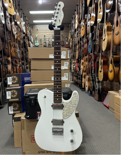 This used Fender Made in Japan Elemental Telecaster in Nimbus White takes a different approach to the traditional Tele format, focusing on modern playability and expanded tonal range. The alder body features a subtle arched top and satin finish, giving it a more refined feel while keeping weight and resonance balanced.