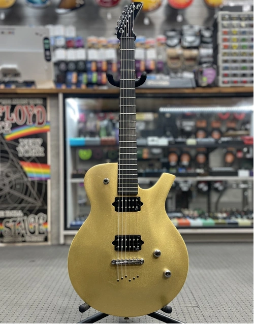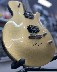 This used Parker PM20G Gold Top Hornet delivers premium features and iconic Parker playability in a classic single-cut format. Built with a maple top and mahogany body, it boasts a set mahogany neck with an ebony fretboard and conical radius for smooth transitions. A pair of custom-wound Parker Stinger Alnico humbuckers produce thick, articulate tones, and the coil tap gives you extra versatility with single-coil sparkle on demand. The traditional string-through design enhances sustain, and Grover tuners provide precise tuning stability.