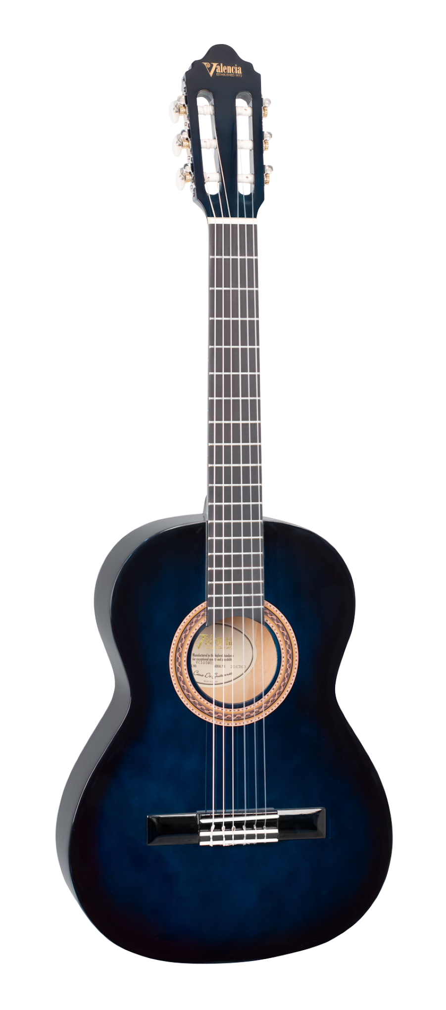 Valencia VC103 100 Series 3/4 Size Classical Nylon String Guitar Blue Sunburst