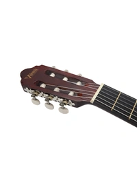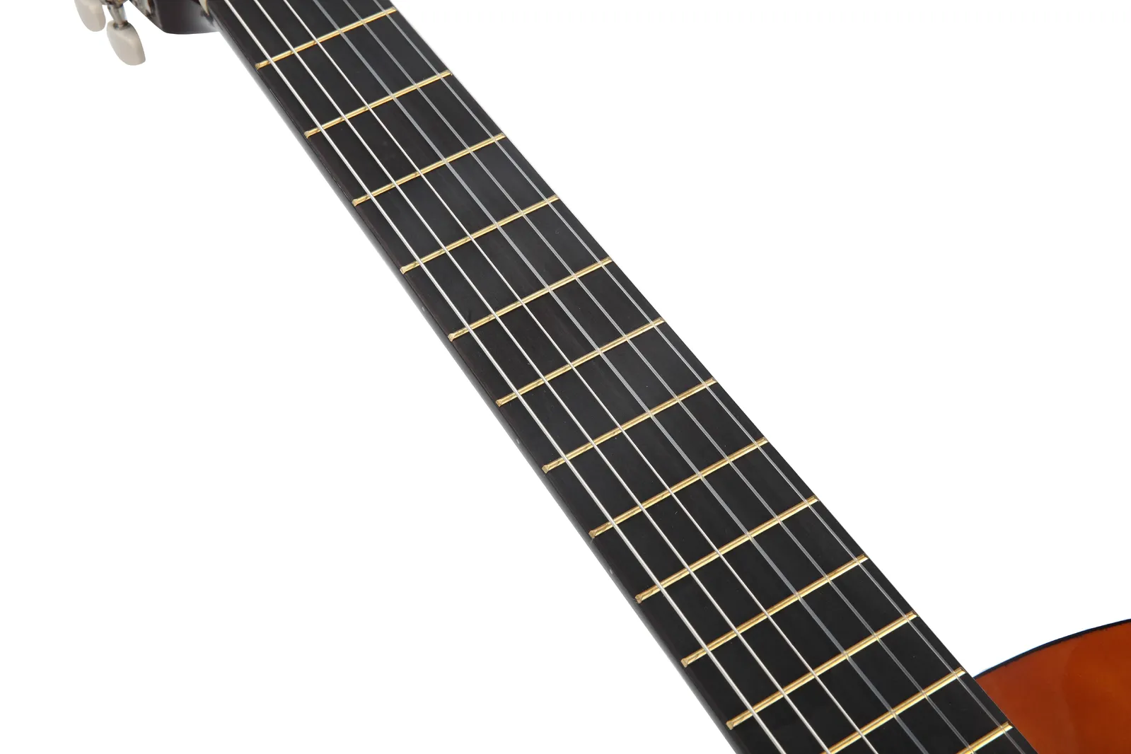 The Valencia VC104 100 Series Full Size Classical Guitar is an excellent choice for young or beginner players. Featuring a linden top, back and sides, this guitar delivers a warm, balanced tone. Its nato neck with truss rod, ebonised maple fingerboard, and NuBone compensated saddle provide stability, comfortable playability, and reliable intonation. The ABS body and fingerboard binding add durability, while custom nickel machine heads ensure smooth tuning. Designed for ease of learning, it also comes with the Valencia UPlay Guitar Guide and access to free online lessons.