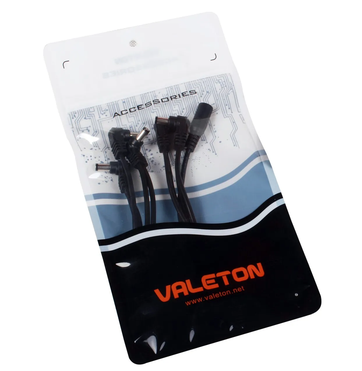 This Valeton daisy chain will connect 5 of your pedals to a single power supply. 24AWG oxygen-free copper inner core. 3.5mm wire diameter. Over 25cm between plugs.
