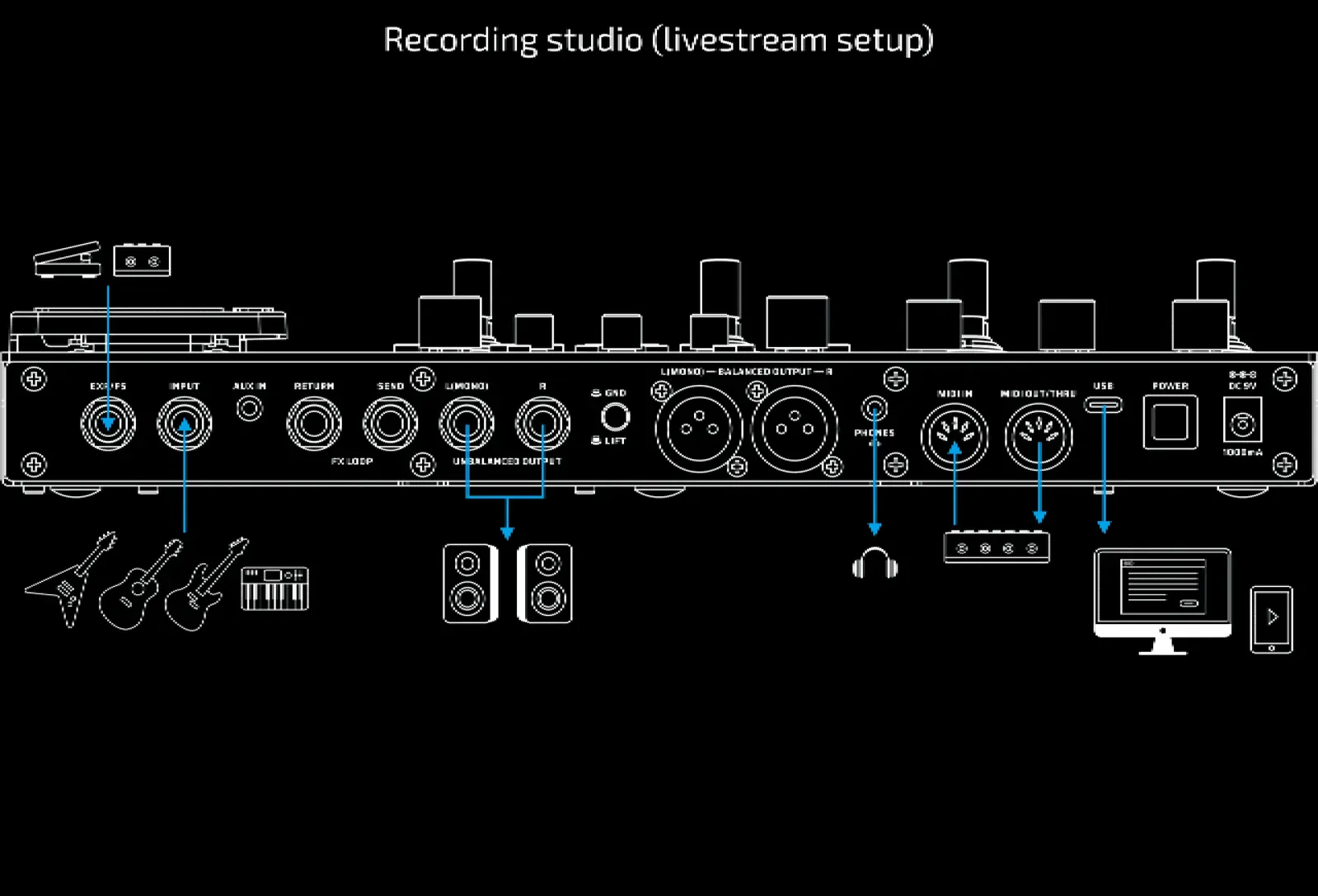 | Guitar Input: 1/4″ Unbalanced (TS) |