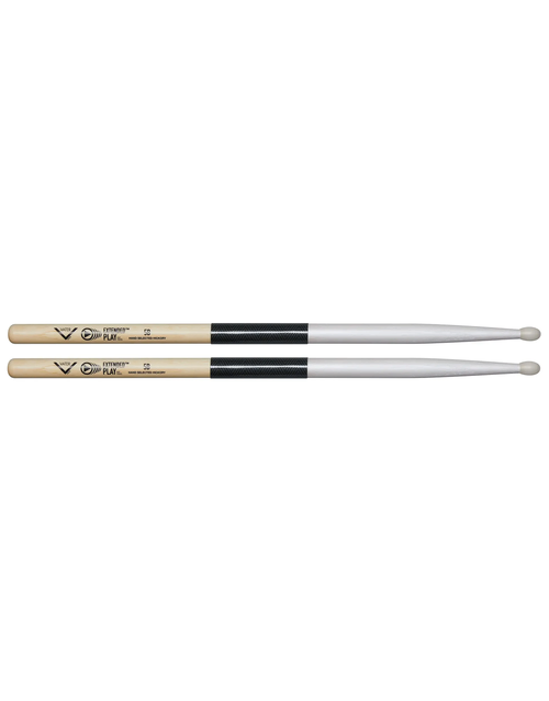 The Vater Extended Play Series is an extremely durable drumstick that has two distinct features to help address issues of common wear and tear on a players’ drumsticks. The first feature is a pearl-colored, specially formulated durable finish that protects the tip and shoulder area of the stick to slow early chipping and cracking. The second feature is our exclusive 3 inch Stick Shield located in the rimshot area that is highly impact resistant and 8X stronger than Steel with maximum tensile strength. The grip area of the stick has the same great-feeling finish as found on all Vater Sticks. Extended Play sticks offer the optimal balance and feel of a Vater hickory stick, with advanced durability and resistance to rimshot fatigue and breakage
