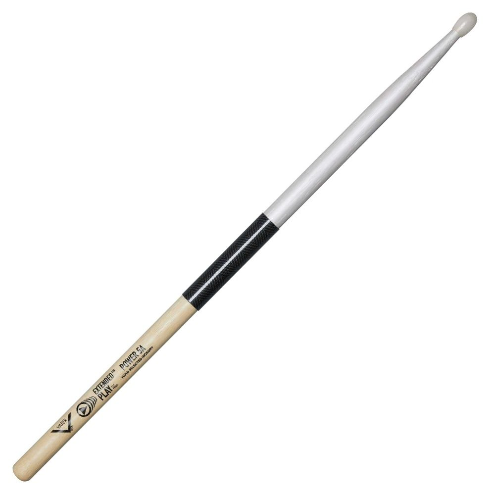 The Vater Extended Play Series is an extremely durable drumstick that has two distinct features to help address issues of common wear and tear on a players' drumsticks. The first feature is a pearl-colored, specially formulated durable finish that protects the tip and shoulder area of the stick to slow early chipping and cracking. The second feature is our exclusive 3 inch Stick Shield located in the rimshot area that is highly impact resistant and 8X stronger than Steel with maximum tensile strength. The grip area of the stick has the same great-feeling finish as found on all Vater Sticks. Extended Play sticks offer the optimal balance and feel of a Vater hickory stick, with advanced durability and resistance to rimshot fatigue and breakage