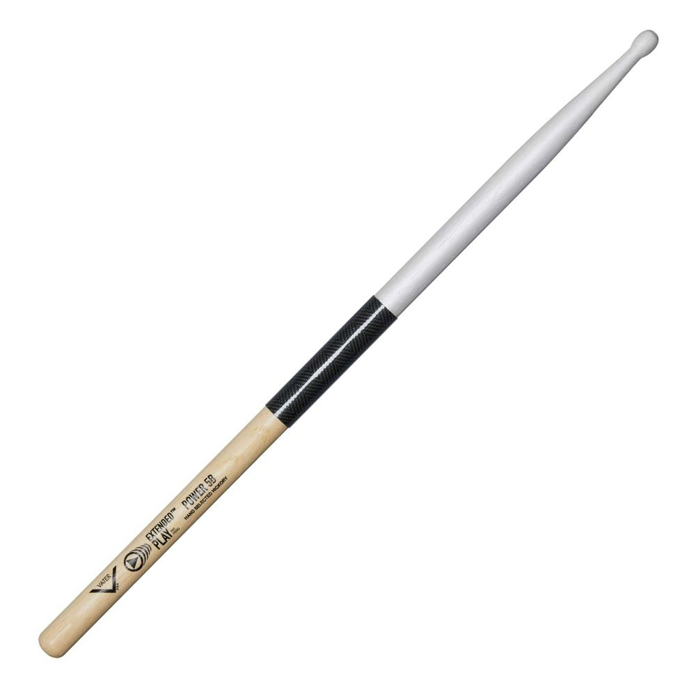 The Vater Extended Play Series is an extremely durable drumstick that has two distinct features to help address issues of common wear and tear on a players' drumsticks. The first feature is a pearl-colored, specially formulated durable finish that protects the tip and shoulder area of the stick to slow early chipping and cracking. The second feature is our exclusive 3 inch Stick Shield located in the rimshot area that is highly impact resistant and 8X stronger than Steel with maximum tensile strength. The grip area of the stick has the same great-feeling finish as found on all Vater Sticks. Extended Play sticks offer the optimal balance and feel of a Vater hickory stick, with advanced durability and resistance to rimshot fatigue and breakage