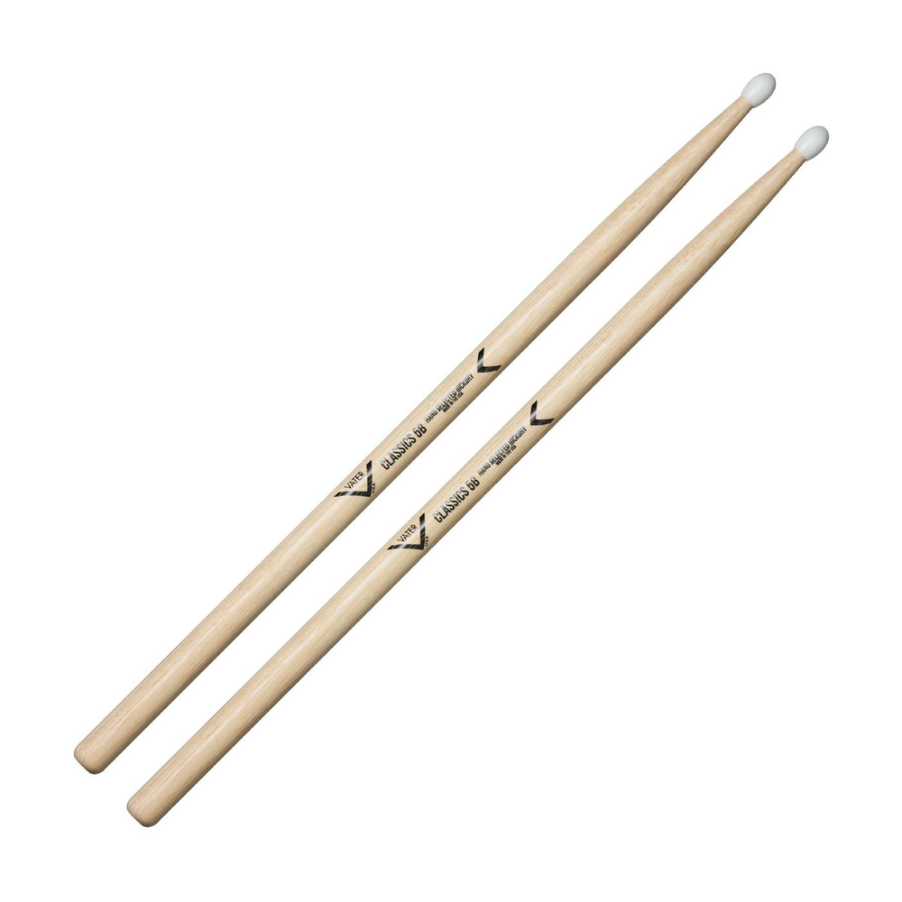A little undersized in grip as compared to the popular Vater 5B. Classics 5B is very versatile in many musical applications and playing styles with its very comfortable grip size. Oval nylon tip for full and bright sound.
