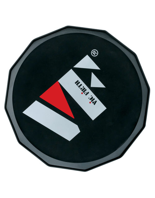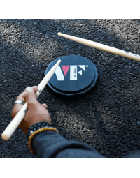 The Vic Firth 6" Practice Pad - VF Logo features a classic Vic Firth "VF" logo design, a responsive playing surface, a solid base, and an 8mm mounting insert that enables easy attachment to a cymbal stand. Ideal for beginning drummers, this silicone pad provides excellent response for learning drum set technique.