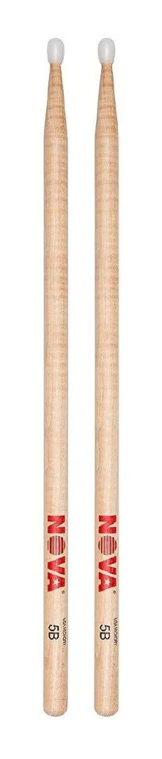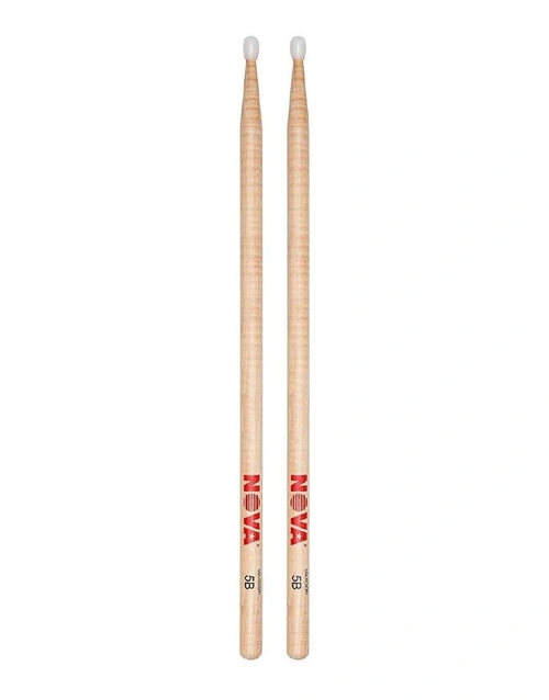 The Vic Firth Nova 5BN Drumsticks – Nylon Tip are made from grade B Hickory, and are perfect for a drummer or percussionist on a tight budget. Although they're cheaper than the premium line, these Nova drumsticks provide an excellent feel with a tear drop tip for rich sounds. Each pair is weight-sorted and tone-paired using Vic Firth technology, ensuring the best possible performance every time.