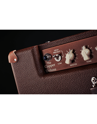 Introducing the Victory VC35CD The Copper Deluxe 1x12" 35W Valve Guitar Combo Amp, evolved from the much-loved VC35 The Copper, with added valve-driven spring reverb and tremolo. This wide body combo boasts a Celestion G12 Alnico Gold speaker, selected after rigorous blind listening tests for its perfect synergy with the amp. From chiming cleans to heavy gain rock tones, the VC35 Deluxe offers plenty of gain options, with interactive tone controls and a master volume for fine-tuning. Sculpt your low end with a rotary pot and bass cut switch, while the mid boost switch and rotary control deliver rich, vocal lead tones. Experience dreamy valve-driven spring reverb and evocative tremolo effects, footswitchable for convenience. Switch between 35 watts full power and 12 watts low power for versatile dynamics. With features like a master tone cut, series effects loop, and external bias test/adjust, the VC35 Deluxe offers unmatched versatility and tone shaping capabilities.