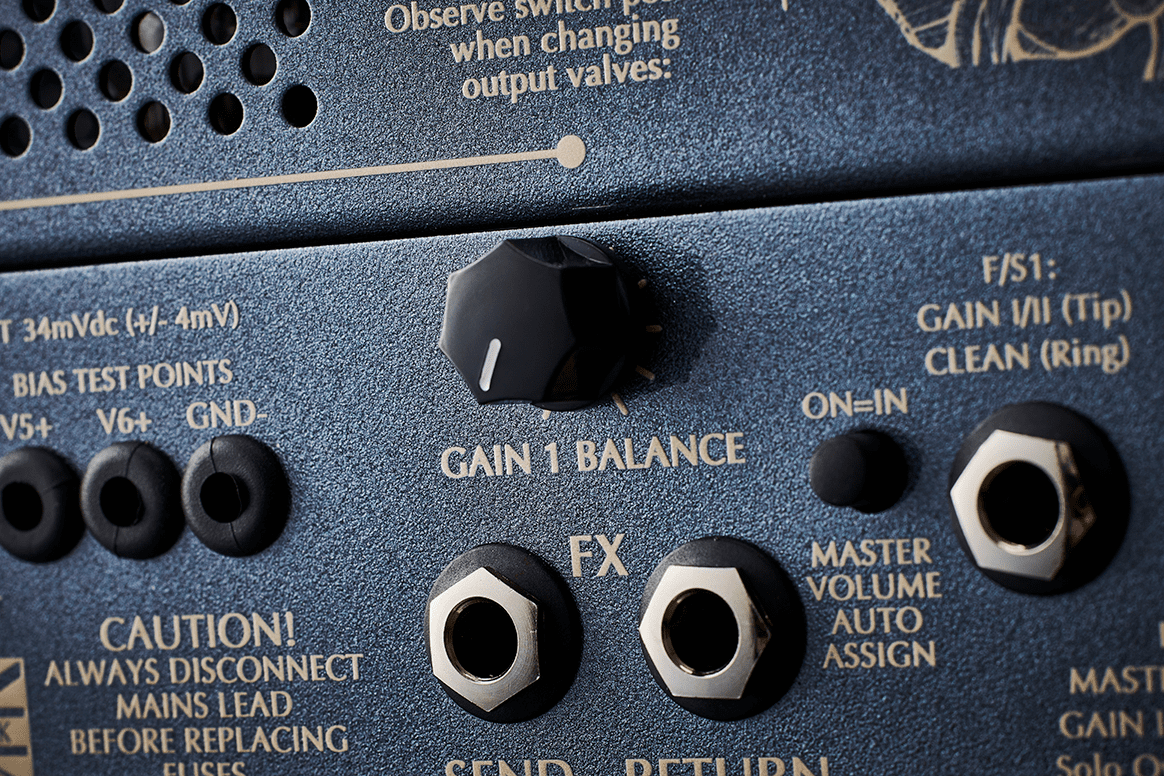 | Rear Panel | Dual 8 + Single 16 Speaker Out, Bias Adjust, Gain 1 Balance Knob, FX Loop Send/Return, Master Volume Auto Assign Switch, Footswitch In for Clean/Gain I & Gain I/Gain II, Footswitch In for Master I/II / Gain I/MasterII Solo Override |