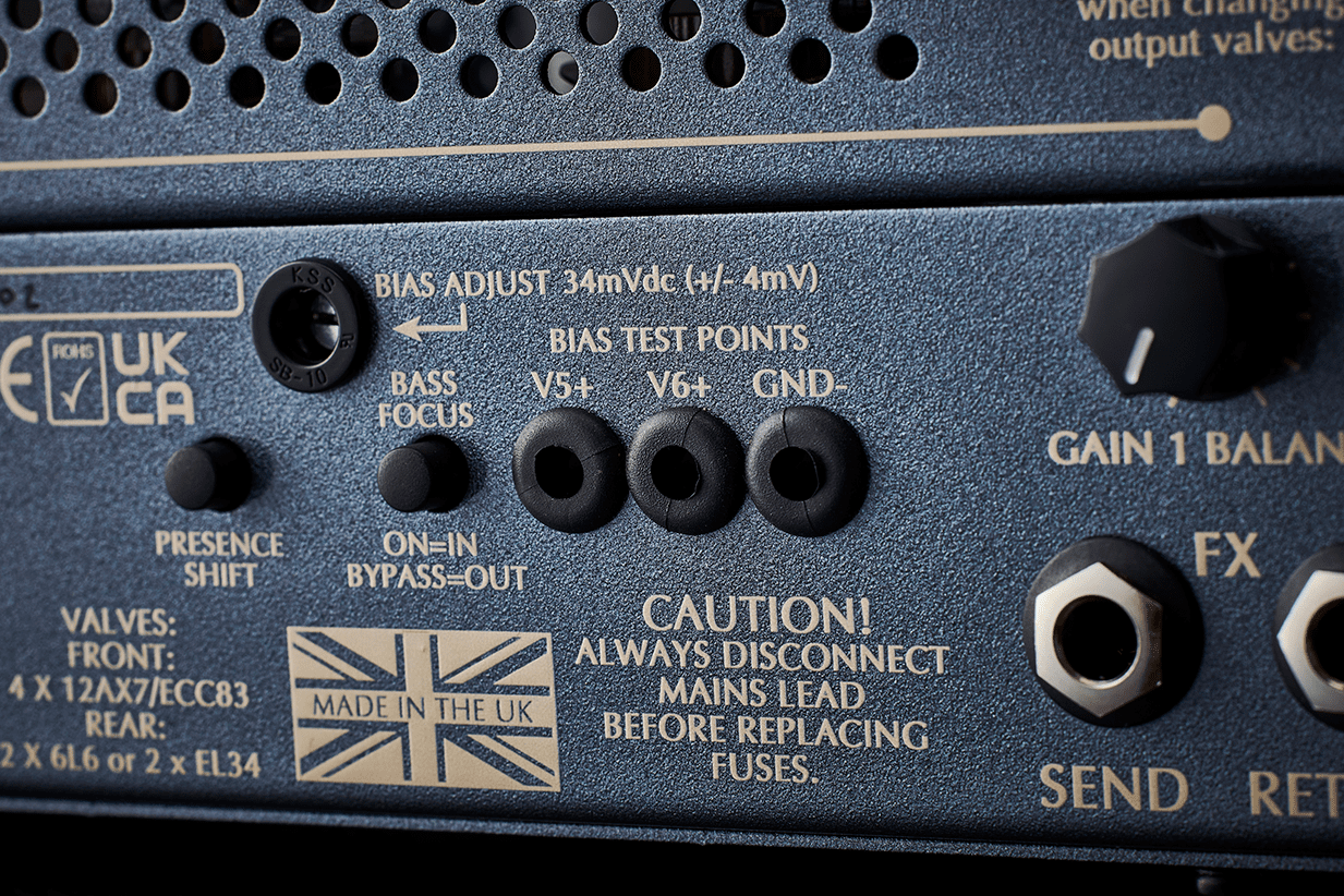 | Additional Features | Footswitchable Modes Gain I/Gain II, Clean/Gain I, Master I/II (Two Dual Latching Footswitches Included), Series Effects Loop, Bass Focus, Presence Switch, External Bias Points, Heavy Duty Gig Bag / Travel Bag Included |