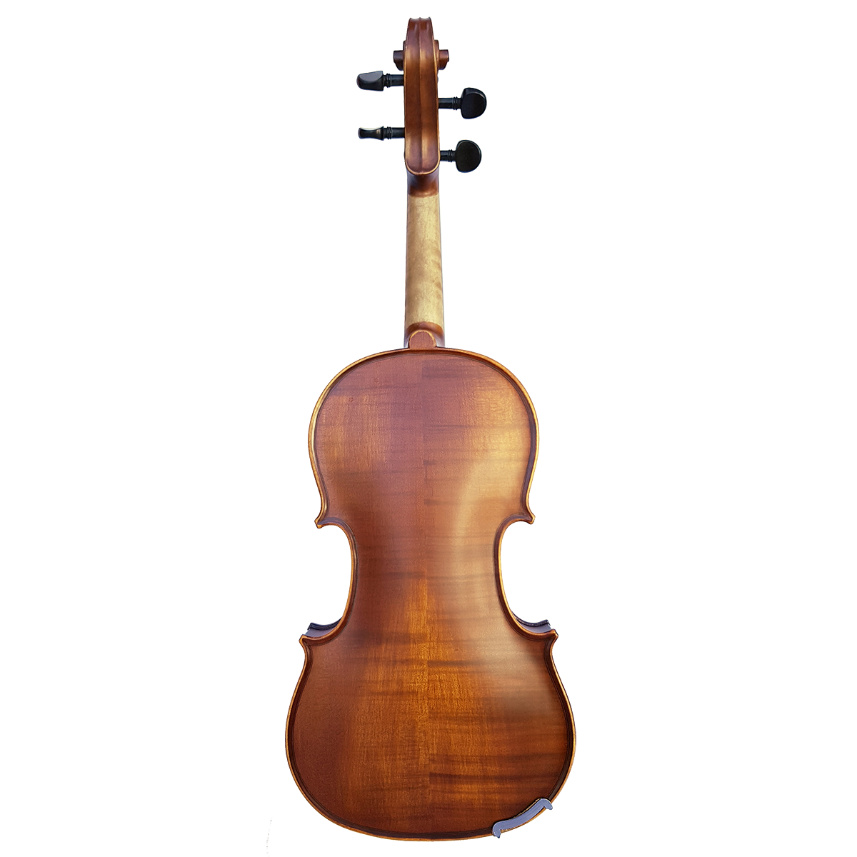 The Flamed Maple back and sides, inlaid Purfling, Ebony Fingerboard, Ebony Pegs and Chinrest combine to give the instrument the classic traditional look.