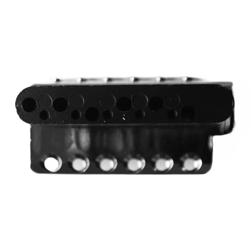 Faithfully reproducing the size and weight of the original, this is a direct retro-fit for the "real thing" but with the added benefit of a push-in vibrato arm (rather than the troublesome original screw-in type). Wilkinson also staggered the string holes in the sustain block allowing the strings to follow the natural intonation line of the saddles, keeping the strings' "angle of attack" over the saddle's intonation point more consistent, eliminating annoying string "hang-up" giving unrivalled tuning stability.